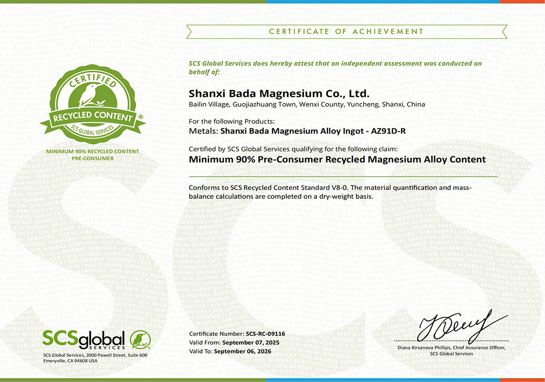 公司陆续通过ISO 9001:2015、ISO 45001:2018、ISO 14001:2015、IATF 16949: 2016及SCS认证,产品严格执行GB/T、ISO及ASTM等相关产品标准。八达技术中心检测设备完善,在技术分析、工艺优化、质量监控等方面全部实现了微机化管理,配备有直读光谱仪、ICP光谱仪、盐雾腐蚀试验箱、微控电子拉力试验机、数码金相显微镜、全自动布氏硬度计等全套先进检验设备,全流程严格执行质量管理体系标准要求。公司秉承“客户至上,质量为先”的服务理念,以优质的产品、完善的服务、过硬的质量赢得了国内外客户的信赖和赞誉。